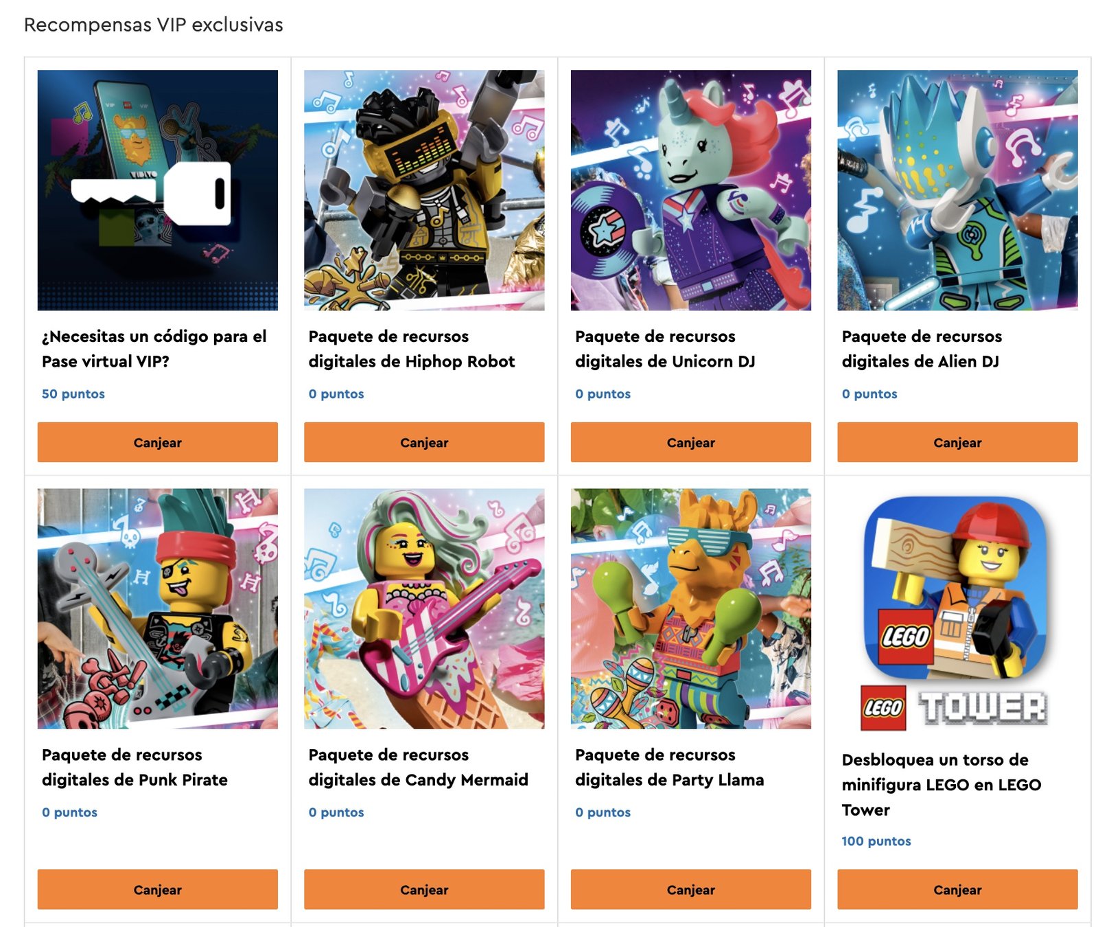 Si no alcanzaste un Pase Virtual de LEGO Vidiyo, puedes comprar uno con 50 puntos VIP. Con este pase virtual, tendrás acceso a contenido digital así como la oportunidad de ganar un sorteo de productos LEGO Vidiyo.