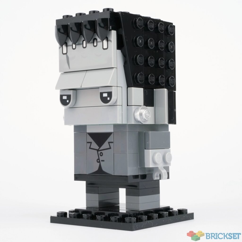 Otros detalles incluyen las piezas plateadas en el cuello para representar los clavos que tiene el personaje y la cabeza más grande que un BrickHeadz normal. Además de la foto de la caja arriba, chécate la imagen a continuación del personaje: