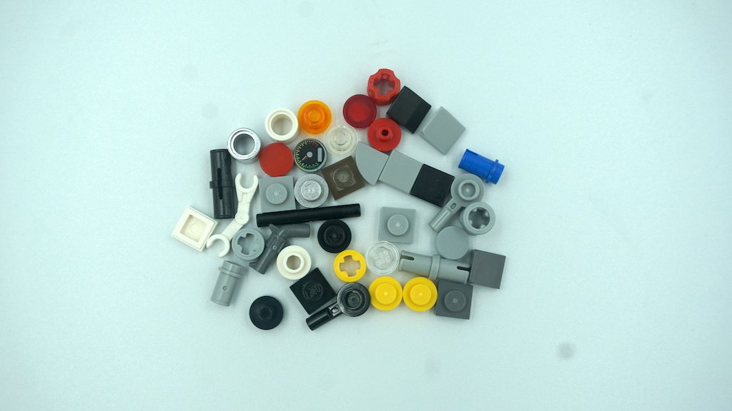 Pensaría que tendría más piezas sobrantes. Aunque fueron más de 30 piezas sobrantes, considero que fueron pocas dada la cantidad de piezas totales en el set. Obviamente la mayoría de las piezas fueron del tamaño de 1×1. Como el carro es mayormente gris, este color predominó en las piezas sobrantes. Pocas piezas rojas, naranjas y amarillas también me sobraron. Ninguna pieza interesante o única del set, todas son bastante estándar.