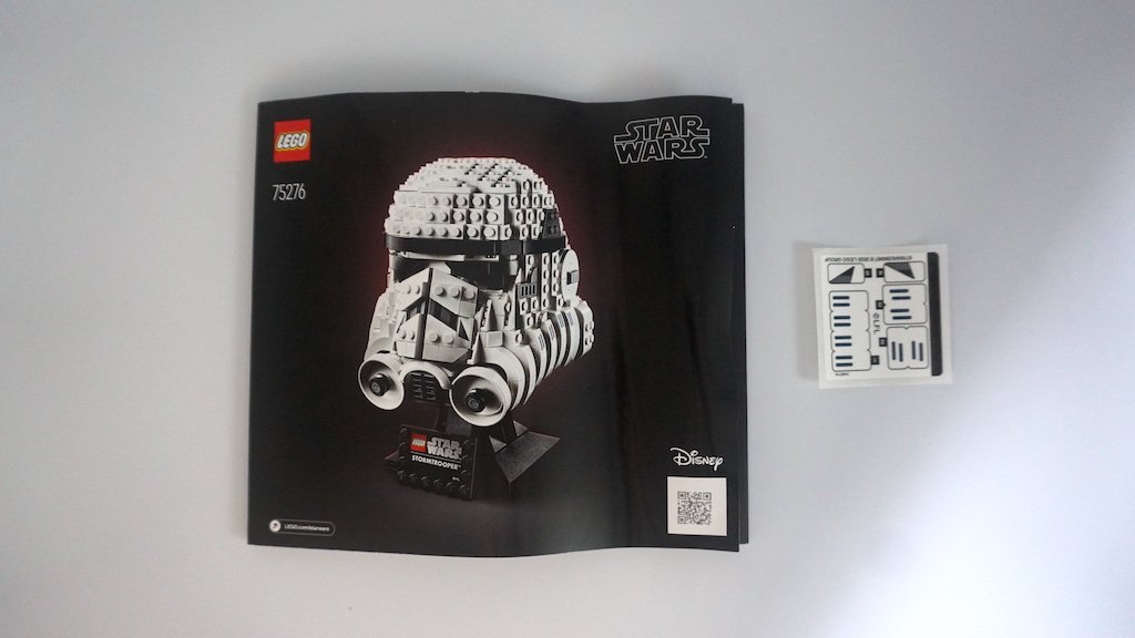 El libro de instrucciones comienza por darte la bienvenida e introducirte a la serie de cascos de LEGO Star Wars. La bienvenida se da a través de una carta de Jens Kronvold Frederiksen, director creativo de LEGO Star Wars, en tres lenguajes diferentes: inglés, francés y español. Para la página 6, ya comienza la construcción. En total, el instructivo cuenta con 124 páginas, de las cuales 115 son de construcción. Además del instructivo, este juego de LEGO cuenta con un set de diez calcomanías para darle más detalle al casco.
