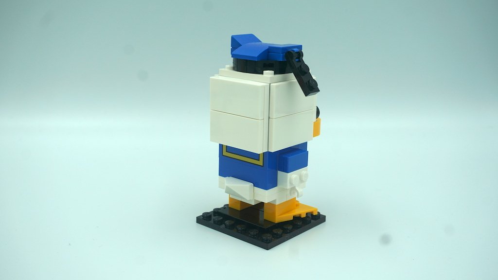 El Pato Donald está compuesto de solamente 90 piezas. Como lo mencioné arriba, la construcción fue bastante rápida y también se ve reflejado con el hecho de que LEGO te divide su construcción en solamente 32 pasos. Comparando el número de pasos con Goofy y Pluto, la complejidad del Pato Donald está más cerca de Pluto que de Goofy. La mayoría de las piezas fueron mayores a placas de 1×2, y creo que por esto fue que la construcción es más corta y rápida.