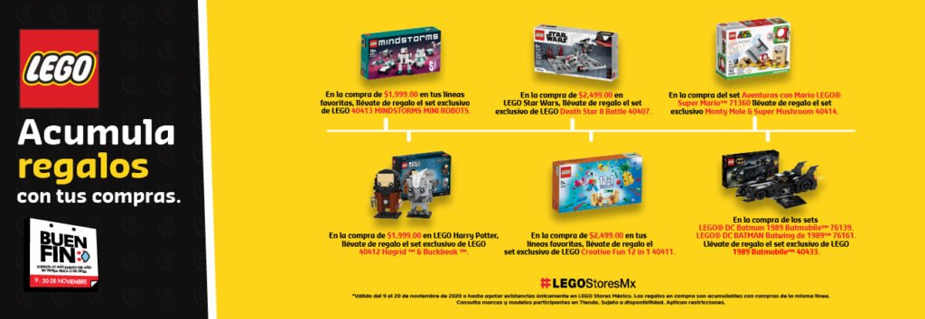 Por ahora, LEGO México ha anunciado vía sus redes sociales todos sus términos y condiciones con MSI por tarjetas de crédito. También, hasta ahora han anunciado que los temas de Harry Potter, Súper Héroes, Disney Princess y Pick-a-Brick tienen el 20% de descuento. Veremos si siguen anunciando más.