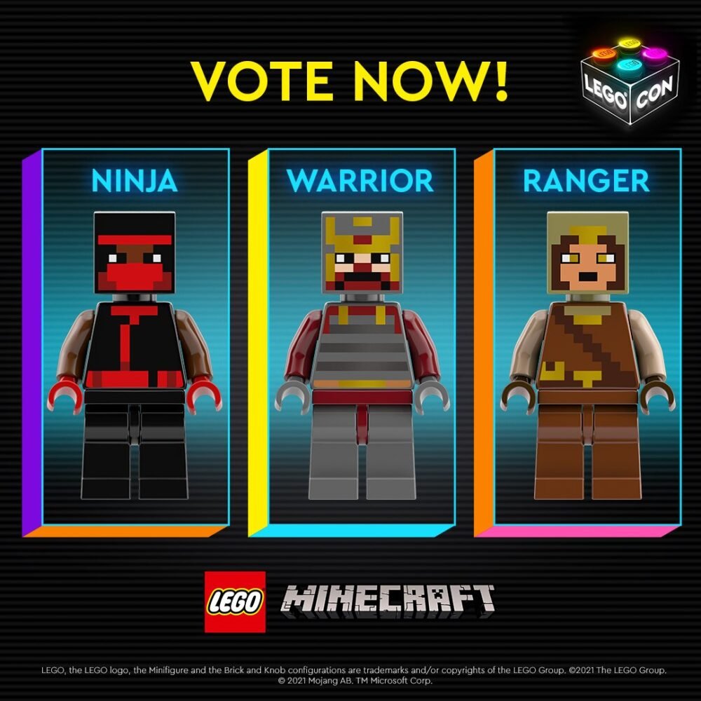 Si no tuvieron chance de ver LEGO CON 2021, LEGO comenzó una encuesta para que fans decidieran una nueva minifigura de LEGO Minecraft. Con esto, LEGO confirma que el tema continuará de perdido hasta el 2022. De los personajes que puedes escoger, están el Ninja, Warrior, o Ranger. Para ingresar tu voto, solo tienes que entrar a Twitter. La votación hasta ahorita tiene al Ninja muy por encima de los demás. Aún quedan un par de días para que se acabe la votación.